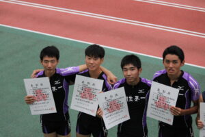 4×400mリレー 優勝メンバー 男子円盤投 優勝 山口 翔(2年)