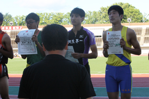 5月17日(木)から20日(日)に正田醤油スタジアムで開催された第53回群馬県高校総体 陸上競技の部で、2年園田君(400m 優勝)、2年山口君(円盤投げ 第3位)、4×400m(2年メンバー 第4位)、3年北村君(走高跳 第4位)、2年丸山君(8種 第4位)で関東大会出場の切符を手にしました!