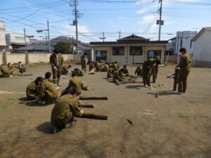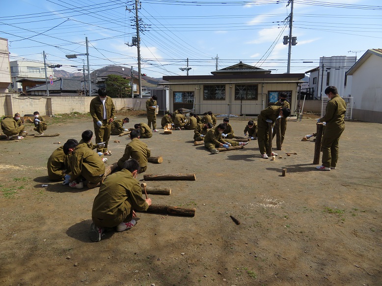 今年の2年生は、コロナの影響で校外学習ができなかったことから、第3回目として「しいたけ駒植え体験」を実施しました。場所は校舎隣の旧幼稚園の園庭です。