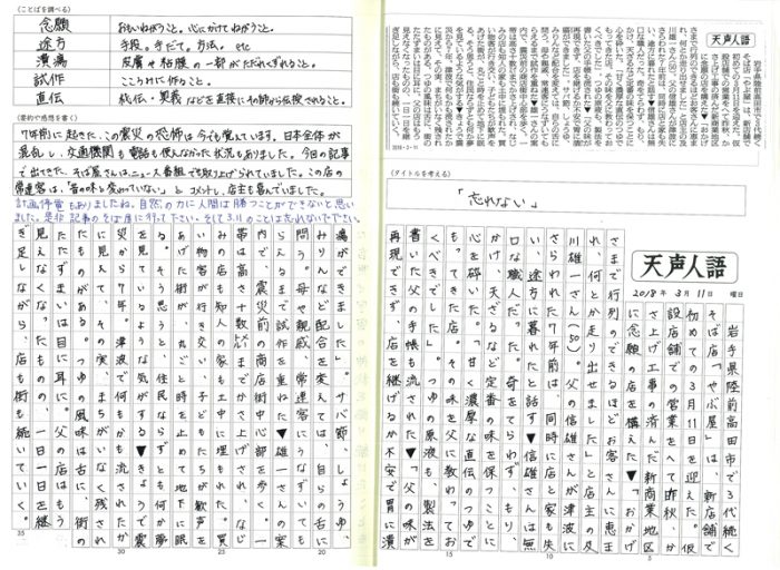 進学コースのBLOG 大学入試に向けて・小論文対策 ホーム > ブログ > コースのBLOG > 進学コースのBLOG > 大学入試に向けて・小論文対策 更新日:2018年03月27日 進学コース2年生では、週1で小論文対策として、天声人語の文を書き写し、意味調べと感想を書いています。 一文字一文字、丁寧に書くことにより集中力も身につけていっています。 日頃からニュースや新聞を見たり読むようにし、世の中の動きに敏感になってください。