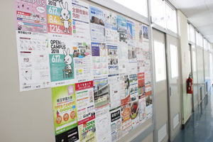 また、3年進学コースの廊下側の壁にはオープンキャンパスなどの案内を掲示しています。