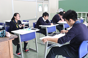 3年進学コースの文系「日本語探求」の授業では、現在ディベートを学んでいます。