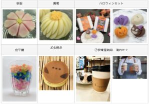 6和菓子 舟定 様 (製菓和菓子実習 東山先生) ・練り切り (ハロウィンカボチャ、紅葉、秋桜、黄菊、ハロウィンセット) ・金平糖 ・どら焼き(シマエナガ) 全て一つひとつ手作りです。和菓子の素晴らしさ綺麗を体感しましょう