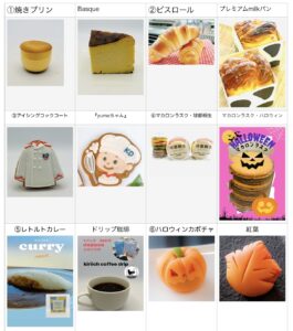 4球都桐生マカロンラスク(洋菓子店モンシェリー ) 野球の街 桐生市として生徒たちがレシピ、企画しました。現在 Family Mart様で販 売中ですが、売れ切れで増産中。なかなか手に入らないレアスィーツです。 ・ハロウィンサブレ 当日限定品 お味はサクサクちょっと甘めですが みんなでシェアして楽しいハロウィンを盛り上げま しょう。
