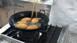 製菓衛生師コースのBLOG 伝統のカレーパン 2年製菓 ホーム > ブログ > コースのBLOG > 製菓衛生師コースのBLOG > 伝統のカレーパン 2年製菓 更新日:2017年06月12日 今日は実習の中でも大好評の1つ。カレーパンです。製菓実習では火を使う調理方法は少なく、今回の揚げる実習も大切な一つとして学んでいました。