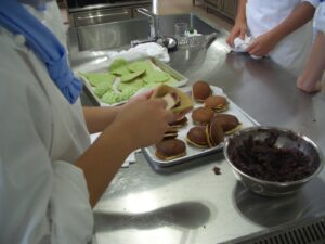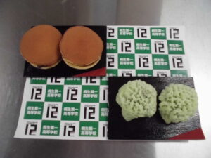 一年生はどら焼きとちゃぶくさを作りました。初めての焼き菓子でホットプレートの熱調整が難しかったです。