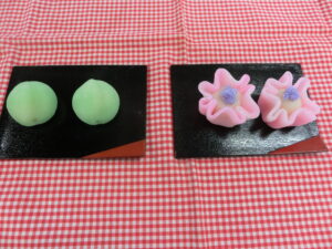 今回作った外郎は「青梅」と「まさり草」の二種類です。あつい生地をこねるのが大変でした。包餡は上手にできました。包あんは丁寧に作ることができましたが、まさり草の形を作るのはとても難しく、もっと多くの練習が必要と感じました。