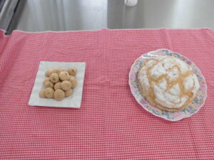 パン・コンプレ、紅茶のビスキュイを作りました。パン・コンプレはメロンパンの形をしており、コーンスターチを使用しているので口どけ軽いです。紅茶のビスキュイはパン・コンプレを並行して製作しました。今日は別立て法で卵白と卵黄を分けるのがのが難しかったです。