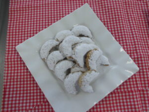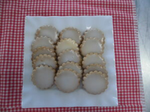 本日はキッフェルン・レモンクッキーを作りました。キッフェルンは独語で三日月といい三日月型の焼き菓子です。アーモンドを入れて焼き上げました。レモンクッキーは初めてアイシングしたクッキーです。アイシングは今日が初めてであり、手際よくやることができました。