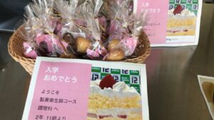 製菓衛生師の二年生を中心に新入生の製菓衛生師コースと調理科の新入生へ