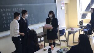 オリジナルビスケットのプレゼントです。 製菓衛生師コースも今年で5期生となり、先輩と後輩のコラボイベントが多くなりました。