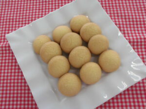 本日はサブレを作りました。初めての焼き菓子です。生地はバターを練りこんでいるので手早く成型しないとベタベタになってしまうので時間・温度管理が大切になります。また、実習ではありますが、製品を作ることを意識して取り組みました。