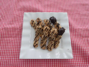 一学期もあとわずか・・・・ 今回も実習助手の先生からの投稿です。午前と午後 とてもお疲れ様です。 1年生は串団子です。醤油だれ、餡だれを作りました。 ポイントは熱いうちに団子を丸めるのがポイントです。 2年生はバトン・マレショーを作りました。 本日は板チョコの刻み方について学びました。![]()