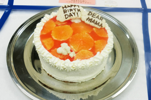 「私たちはお母さんに向けてこの世界に1つだけのバースデーケーキを作りました。オレンジゼリーの中にオレンジの果肉を入れたりと、旬であるオレンジをたくさん使ったケーキです。オレンジの木に込められた『寛大、気前の良さ』、オレンジの果実に込めたれた『優しさ、美しさ』をいつもお世話になっているお母さんへ、感謝の気持ちと一緒に伝えられるような作品になっています」