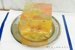 「飴でプレゼントボックスを作ってプレゼント感を演出しました。メッセージプレートの横にクラッカーをつけることでさらに誕生日感を作りました」