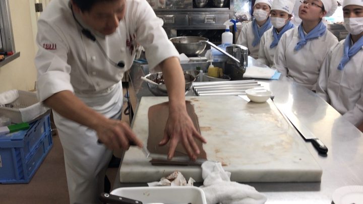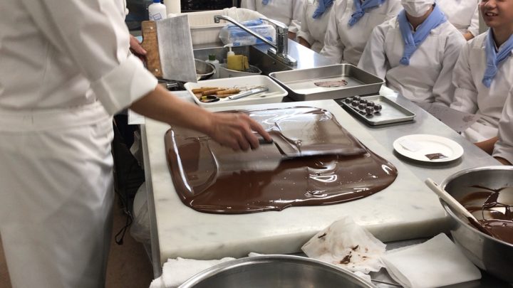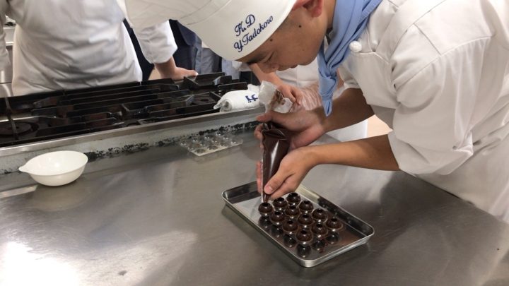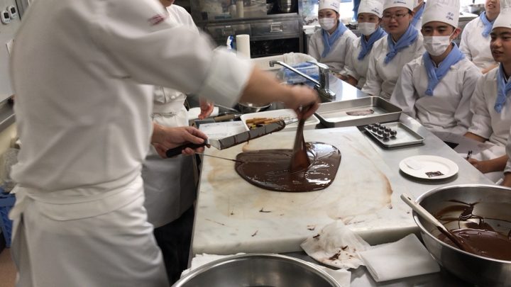 東京よりエコール辻東京・大川先生による実習です。レシピは『チョコレート』です。