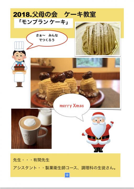 土曜日に父母の会役員の皆様と本校の有間先生・関口先生でケーキ教室が開催されました。