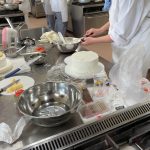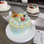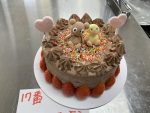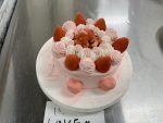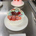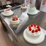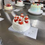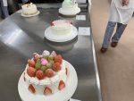 今日は、三年製菓の最後の実習です。応用製菓の授業で3年間の思い出ある実習室で一人一人が考えたデコレーションケーキです。