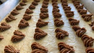 製菓衛生師コースのBLOG オリジナルクッキー ホーム > ブログ > コースのBLOG > 製菓衛生師コースのBLOG > オリジナルクッキー 更新日:2019年03月08日 本日はバニラとチョコレートのクッキーを作りました。初めての絞りクッキーです。均一になるように意識して作りました。