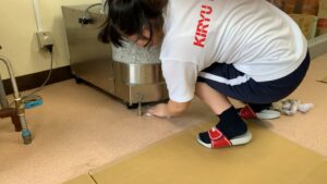 本日は 製菓実習室のピカピカ作戦です。