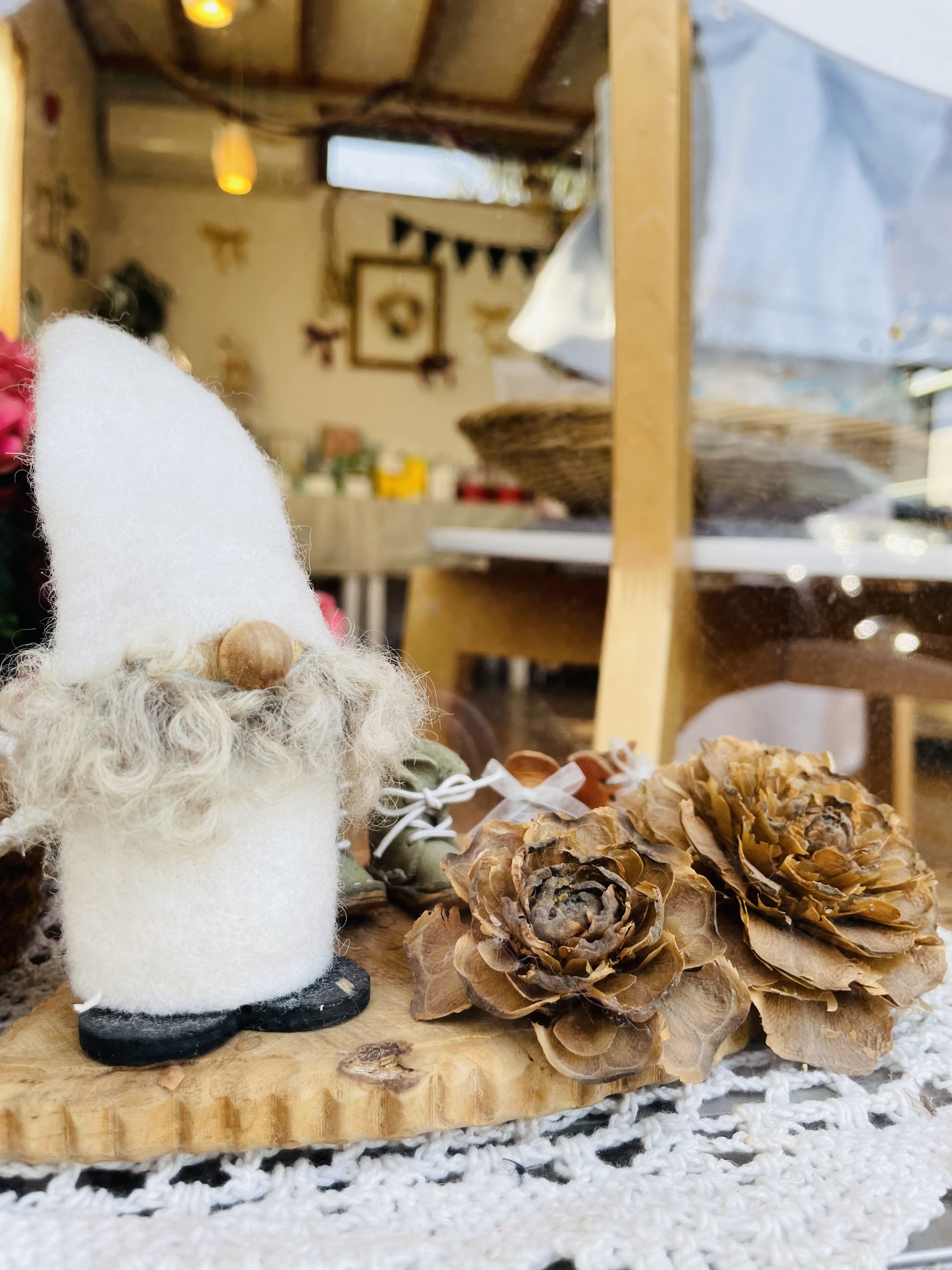 外には黒板のメニュー中にはドライフラワーなどがたくさん飾ってあってとてもおしゃれな感じだった。