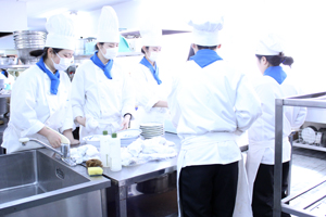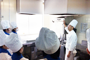 調理科のBLOG 3年調理科:『真剣』 ホーム > ブログ > コースのBLOG > 調理科のBLOG > 3年調理科:『真剣』 更新日:2017年04月13日 今日の総合調理実習は調理機械の説明からです。 限られた時間で大量に作り上げるためには、機械利用をしっかり学び衛生・事故がないよう真剣に聞きました。 来週の実習に向けてその後、今まで使っていなかった食器をすべて洗浄しました。 来週は15人程度で40人分を作る大量炊事を行います。 綺麗になった実習室が来週を楽しみに待っているように感じました。