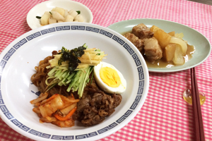 調理科のBLOG 3年調理科:『お客様のために』 ホーム > ブログ > コースのBLOG > 調理科のBLOG > 3年調理科:『お客様のために』 更新日:2017年05月08日 5月2日(火)は、ビビン麺と豚カルビの煮付けとカクテキを作りました。 3年生では、調理をするだけでなくしっかりとコミュニケーションを取りながら確認・指示の動きをしています。 そして今日はお皿を冷やし、食べて頂く『お客様のために!!』を指導しました。