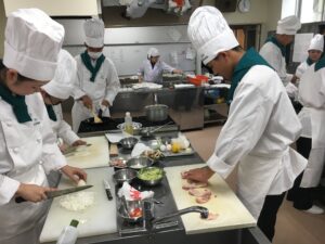3年生は巻き寿司を中心に6品目を作りました。サービス実習も慣れてきて品目が増える中、テキパキと実習を行っていました。今学期も残りわずかですが、最後にビュッフェ形式の実習も控えています。一学期のまとめとして頑張りましょう。