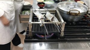 調理科のBLOG 栗ごはんと鯵の塩焼き 3年調理科 ホーム > ブログ > コースのBLOG > 調理科のBLOG > 栗ごはんと鯵の塩焼き 3年調理科 更新日:2017年09月27日 今日は栗ごはんと鯵の塩焼きです。ごはんの炊き具合がポイントです。塩焼きは串刺しが『鯵が泳いでいるように生き生きと刺す』ことがポイントです。内臓はツボ抜きという技法です、割り箸で身を傷つけずに内臓を取り出す技術の勉強です。