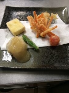 先日先輩から頂いた野菜を天ぷらにしました。 人参はかき揚げにしたら、とても甘味がありました。海老いもはだし汁で炊き 天ぷらにしました。海老いも独特のねばりがあり貴重な経験ができました。ありがとうございました。