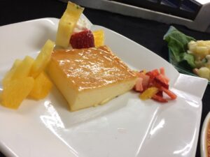 メンチカツでは飽きのこないのようにブロックチーズを入れたタイプと、ブラックペッパーとパセリを入れた大人のメンチカツに仕上がりました。プリンシャンティーはオーブンで蒸し焼きにし「鬆」入らないように注意しながら焼いていきます。盛り付けも手早くセンス良く。