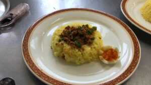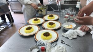 二年生はドライカレーの実習です。下級生から手本となる二年生です。