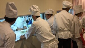 調理科のBLOG シュミレーション実習 3年生 ホーム > ブログ > コースのBLOG > 調理科のBLOG > シュミレーション実習 3年生 更新日:2018年06月21日 現在 3年生では進路決定の大切な時期です。多くの生徒が調理関係への進路を考えております。 総合調理実習では実際に注文・接客・調理の練習です。お客さん役の生徒は全体の総評し問題点をズバリ指摘します。 これが キリイチ調理科の強くなる原点です。 友達ではなく消費者としての目線から自分だったらどうしようと考え チームで改善する努力をします。