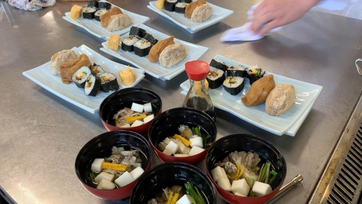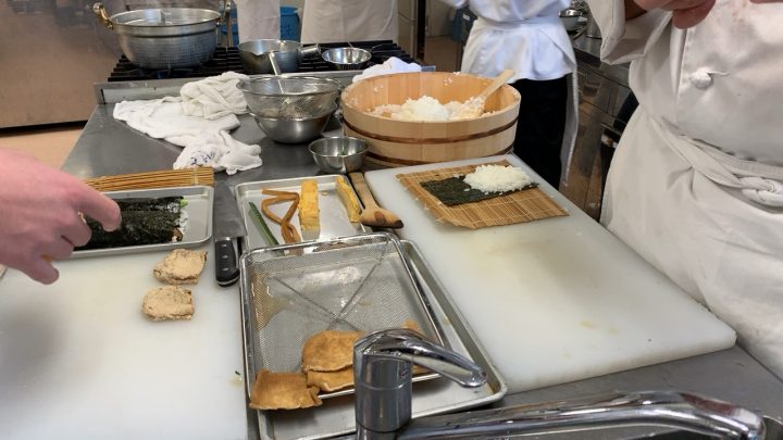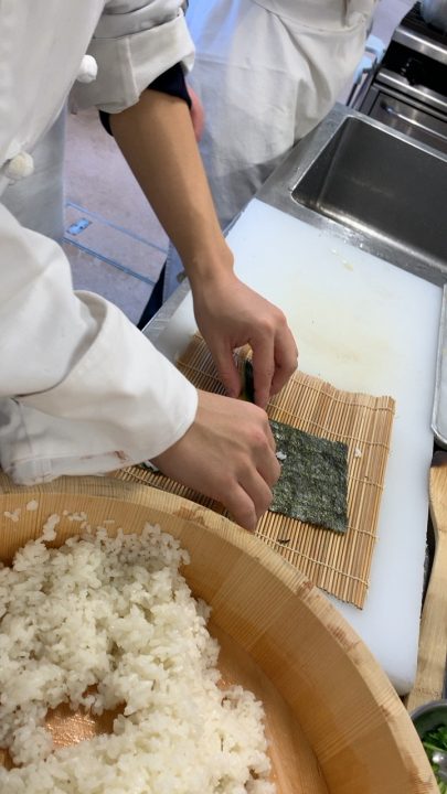 調理科のBLOG 助六寿司 1年 ホーム > ブログ > コースのBLOG > 調理科のBLOG > 助六寿司 1年 更新日:2019年02月01日 今日は恵方巻の時季となり酢を使用した実習です。1年生もチームワークで作品時間の短縮が求められてきました。 巻き方についてはとても難しく形が崩れないように集中しました。