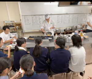講義していただいた卒業生は『このような機会をいただきまして、ありがとうございました、在学中 大変お世話になり 調理人の基礎基本を教えていただいたお礼ができました 後輩たちに少しでも調理人に興味が出ればと思います』