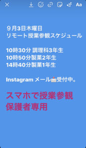 調理科のBLOG 9/3 リモート授業参観スケジュール ホーム > ブログ > コースのBLOG > 調理科のBLOG > 9/3 リモート授業参観スケジュール 更新日:2020年09月02日 https://www.instagram.com/p/CEoO9ecnNlA/?igshid=1p9xa1gcnlta9