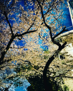 先生たちは、遅くまで新学期の準備で疲れて正門を出ると、綺麗な夜桜が、、、、