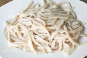 うどんをこねる所から始め、生地を伸ばし、そしてつけ汁に関しても自分たちで作りました。