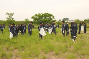 河川敷の草むらをかき分けゴミ拾いを行ったり、グラウンド周辺の清掃活動を行いました。