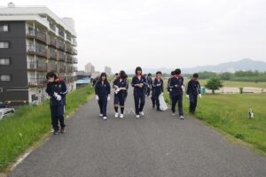 本日、渡良瀬川の河川敷でボランティア活動が行われ、2年生9名・1年生4名の計13名が参加しました。