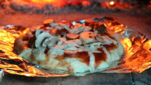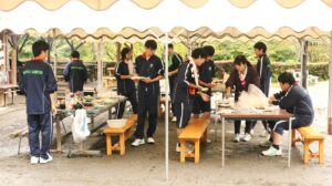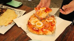 2年生がピザ作りに挑戦しました。生憎の雨となってしまいましたが、そんな天気も関係なく!