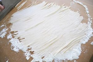 ほとんどの生徒が初めて作るうどんでしたので悪戦苦闘していましたが、見た目も美しいうどんを