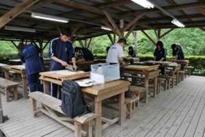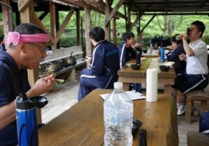 2年生にとって、今年度最初の野外炊事であるうどん作りが梅田野外活動センターにて行われました。