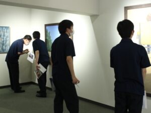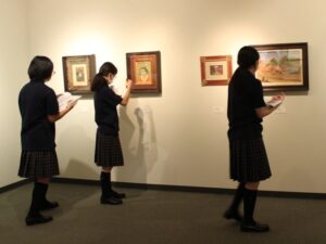 初めに学芸員の方に美術館の説明をしていただき、事前に準備されたワークシートを片手に約1時間半見学をしました。「ワークシートのこの作品はどこにあるのかな?」「この作品、すごいですね」といった声も聞かれ、みんな熱心に美術作品と触れ合っている様子でした。