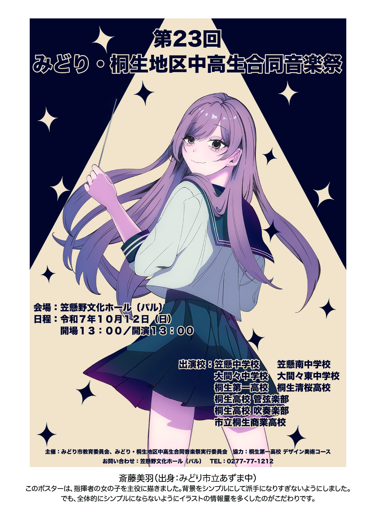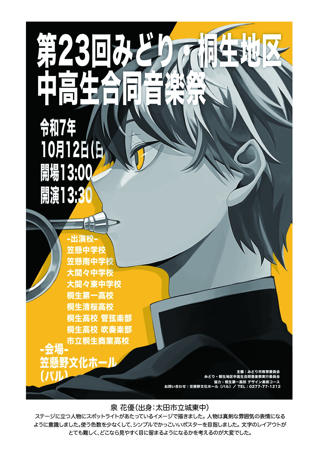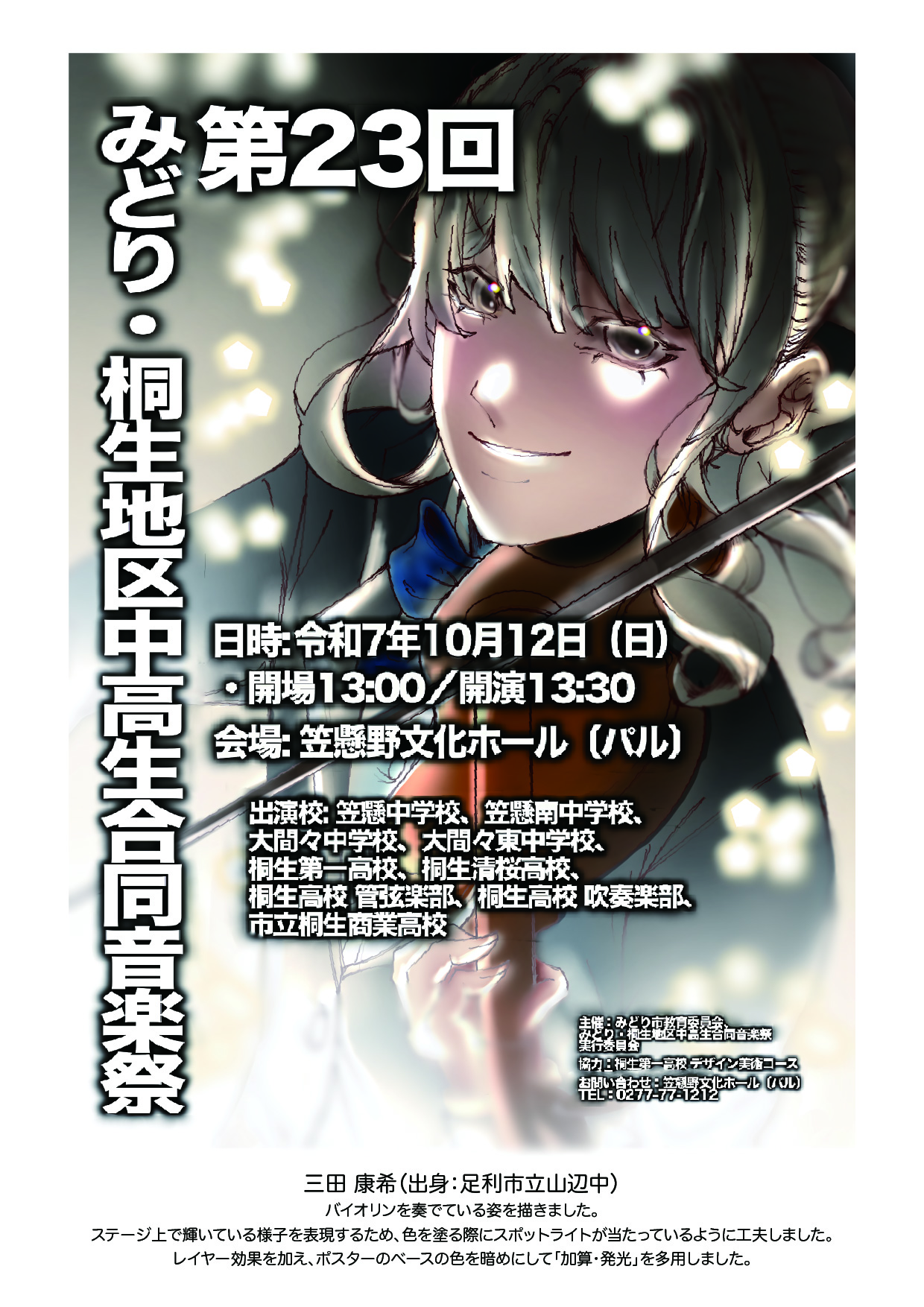 「第23回みどり・桐生地区中高生合同音楽祭」が開催されます。