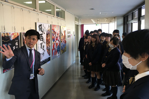 東京造形大学では、自然に囲まれているキャンパスで大学生がのびのびと制作している様子や、様々な専攻を見学させていただきました。映画専攻の音響設備にはじまり、絵画専攻の油画や日本画作品、彫刻専攻の大きな作品など高校生活では目にすることのないものばかりでとても新鮮に感じていました。