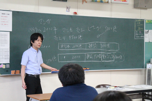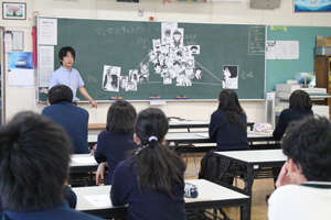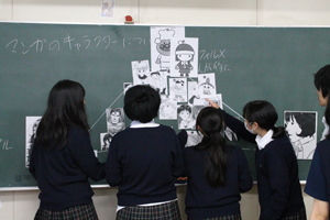マンガの特別講師として三友恒平先生をお招きして、キャラクターの成り立ちや流行、マンガのアイデアの出し方等について学びました。