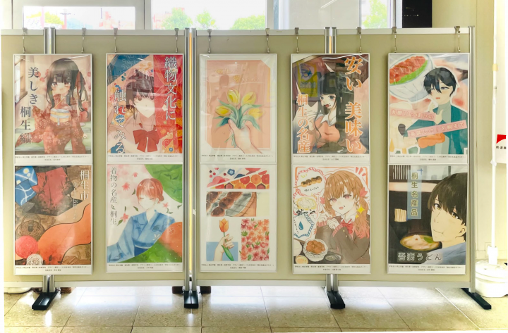 桐生駅(改札口付近)にデザイン美術コース3年生の「桐生の名産品」をテーマに制作したポスターが掲示されます。