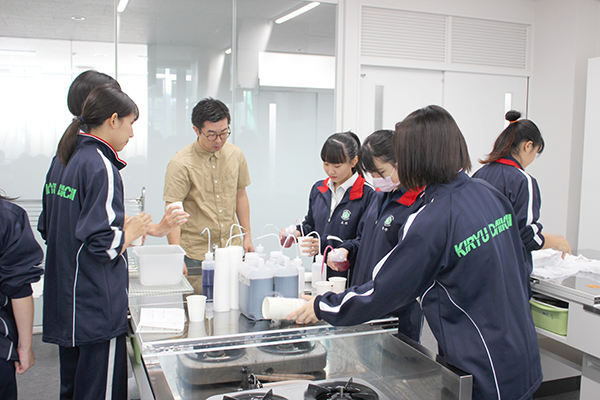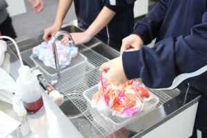 ▽染色実習の様子(染色実習では横倉繊維さんにご指導いただきました。)