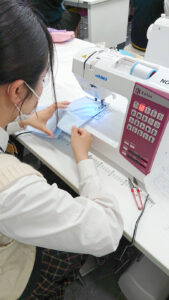 ファッションコースのBLOG 被服製作技術検定4級に挑戦👕 ホーム > ブログ > コースのBLOG > ファッションコースのBLOG > 被服製作技術検定4級に挑戦👕 更新日:2021年05月28日 ファッションコースでは2年生が被服製作技術検定4級に挑戦しました。 35分の制限時間内に 【ミシン】図案縫い・端ミシン 【手縫い】まつり縫い・なみ縫い・半返し縫い・ボタン付け を行います。 4月から始まった実習授業。最初は玉結びもできなくて大騒ぎしていましたが、テキパキとこなす姿がとても頼もしく、成長を感じる時間となりました。